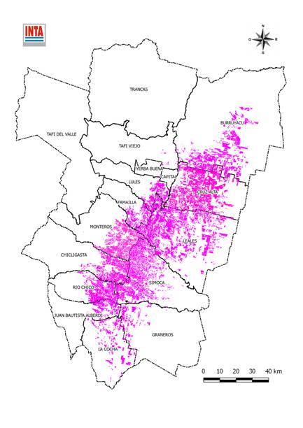 El Laboratorio de Sistemas de Información Territorial del INTA EEA Famaillá determinó que la superficie a cosechar con caña de azúcar durante la zafra 2018 es de 273.737 hectáreas, a partir del procesamiento de imágenes satelitales provistas por la Comisión Nacional de Actividades Espaciales de Argentina (CONAE). La cartografía digital obtenida permitió observar la distribución del cultivo en la provincia a nivel departamental: